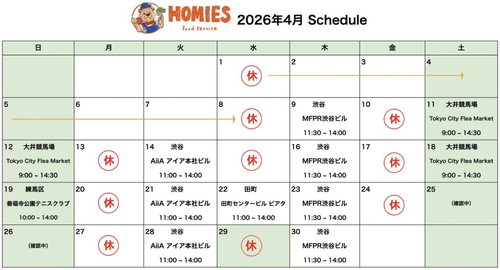 HOMIES Food Serviceでは、出店先を募集しています。また、ケータリングにもお応えいたしますのでお気軽にご相談ください!